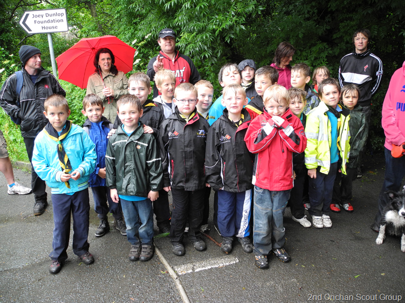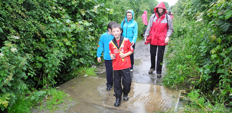 Sunday Beavers and Thursday Beavers have just completed the third and final leg of the Three Legs Challenge 2012. Eight Beavers from each Colony joined the walk from Crosby to Braddan. The rain had already started before the walk got underway at 10am and it didn’t stop! The path was wet and very muddy in places – but the Beavers, along with mums, dads, aunties and granddads persevered and completed the walk in about an hour and a half – a great effort. Five Beavers from the Thursday Colony have now completed all three legs of the 2012 Challenge – so very well done to George, Oliver, Vannin, Cameron and James who have gained their Three Legs Challenge Badge. Sunday Colony will be awarded their badges next week.