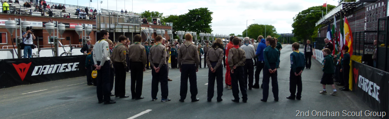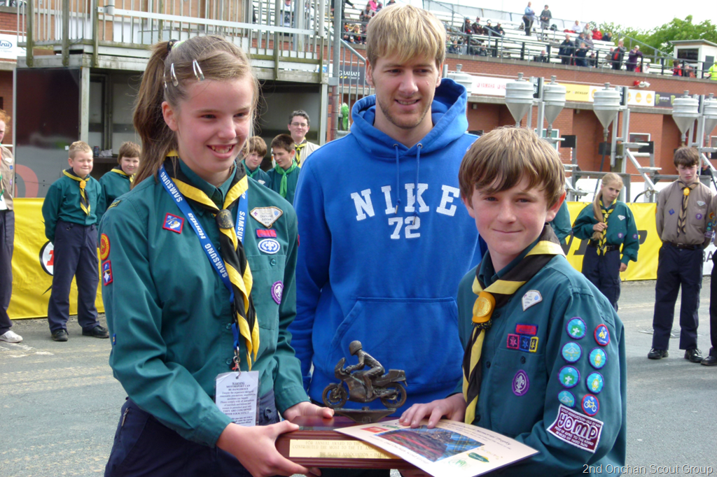 On Senior Race Day each year the Harry Butterworth Trophy is presented to the Scout Group which has been the best Group at the previous years TT and MGP Races. 2nd Onchan came out on top in 2011 and today were presented with the trophy by Star TT Rider Ian Hutchinson. Congratulations to all the Scouts who have worked on the Scoreboards both this year and last year, you are all a credit to the Group.