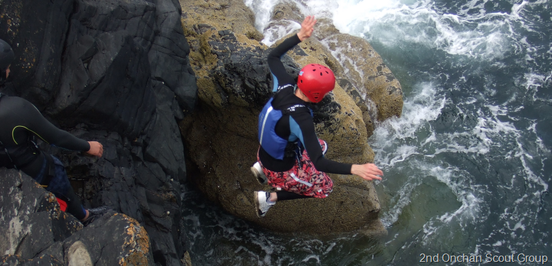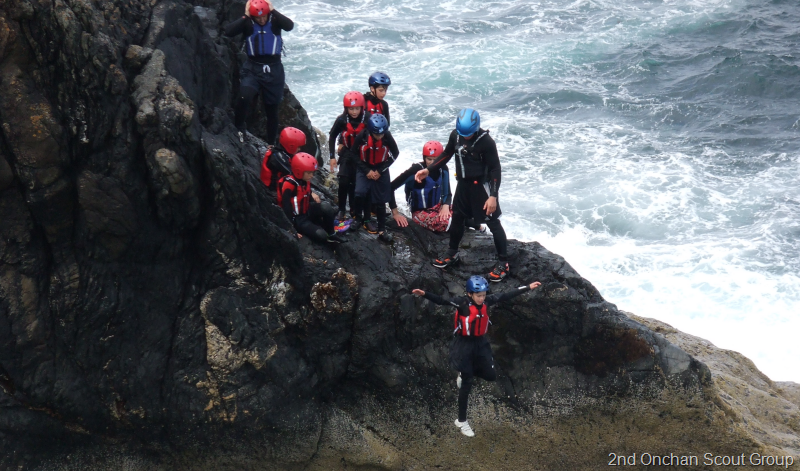 The next morning was an early start, after breakfast we all travelled to Peel where we did some Coasteering with Adventurous Experiences, all the Cubs had a really good time and even Akela and Mark joined in the activity as well. It was very tricky and the Sea was a bit rough but all the Cubs managed to cope with everything that was thrown at us. After some lunch in Peel, we travelled back to Watertrough to finish off the Promise Challenge Badge work before heading off home. Well done to all the Cubs who were there over the weekend, and a special thanks must go to Kieron and George for the Coasteering and not forgetting all the thousands of Midgies at Watertrough Cottage.