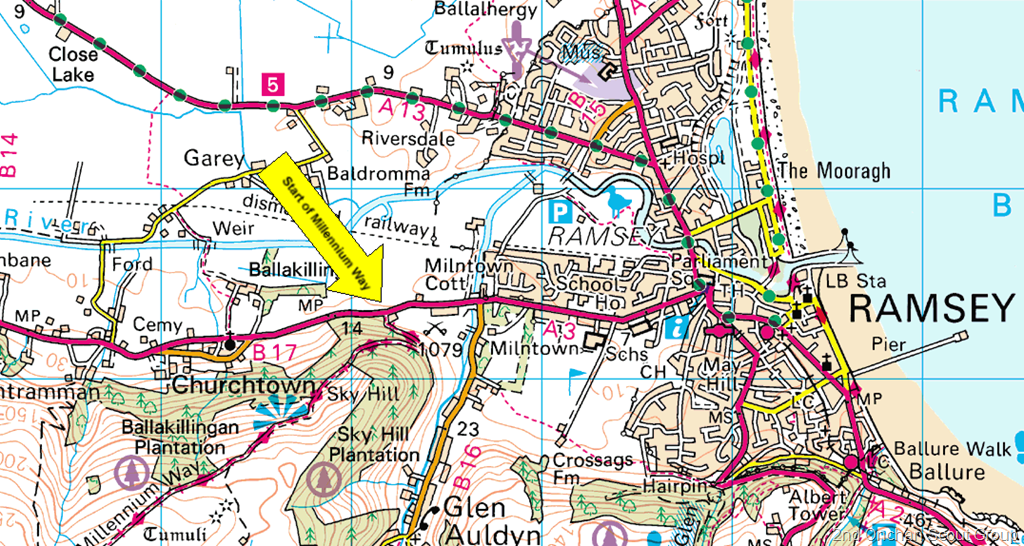 We will be meeting at Sky Hill Car Park (Grid Reference 433 944 click on map above) which is on the A3 about a mile outside Ramsey, for 10:00 on Saturday 21. July. You will need suitable gear for walking in the hills, including waterproofs and hiking boots. You also need to bring a packed lunch contained in a daysac.