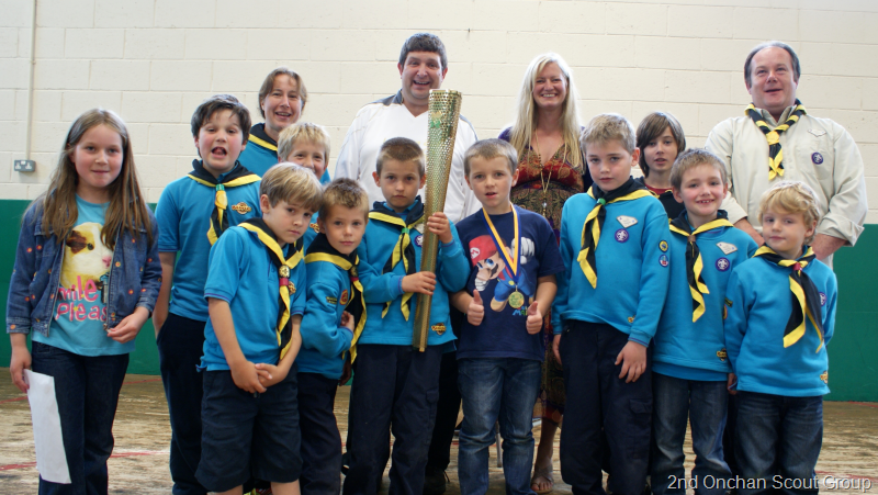 On Sunday 1. July 2012, Sunday Beavers were very excited to receive a visit from Olympic Torch bearer Mr Simon McFerran. Simon is the Douglas Lifeboat Station Souvenir Secretary and he carried the torch through Onchan on the 2. June. Since agreeing to come to the meeting, Simon unfortunately broke his foot but bravely attended on crutches. The Beavers were delighted to see him and were thrilled that Simon very kindly allowed each of them to hold the Olympic Torch.