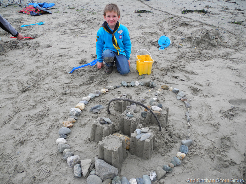 On Saturday, Thursday and Sunday Beavers met with other Colonies on Douglas Beach for a Sandcastle and Marble Run Competition. The aim was to build a sandcastle or a marble run. There were many prize categories, including best sandcastle, best sandcastle by a Beaver, and best decorated sandcastle. There were also prizes for the best marble run and the marble run where the marble ran the furthest.